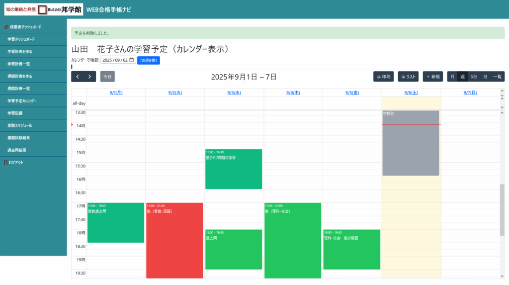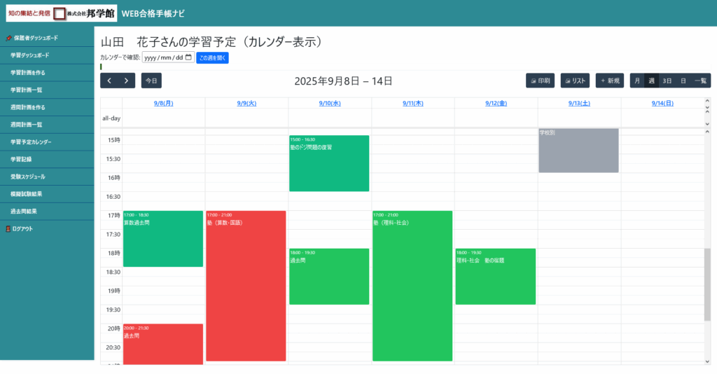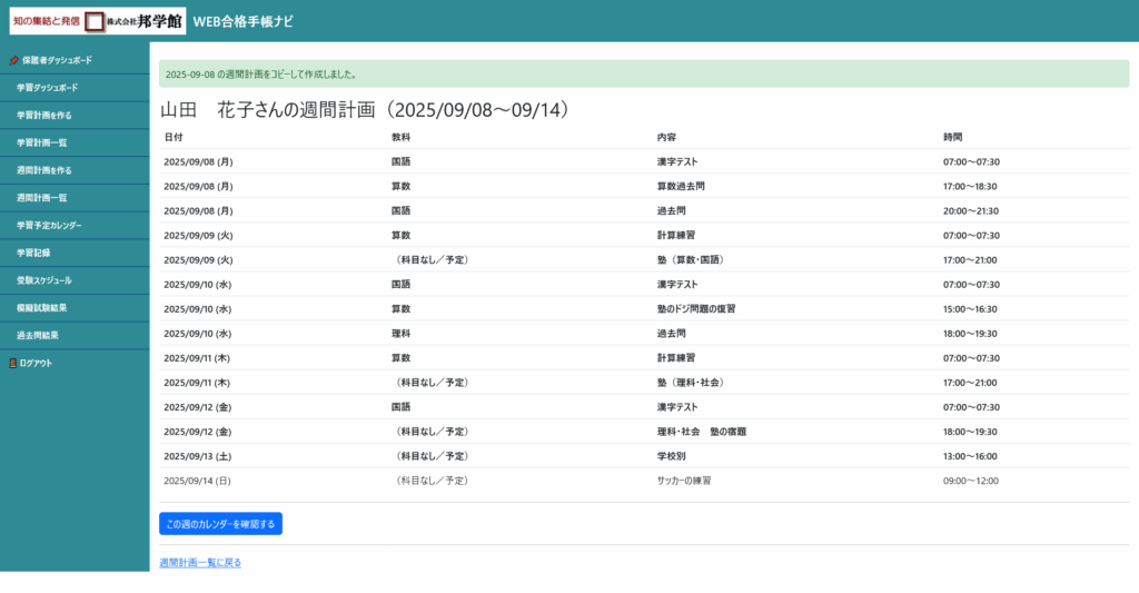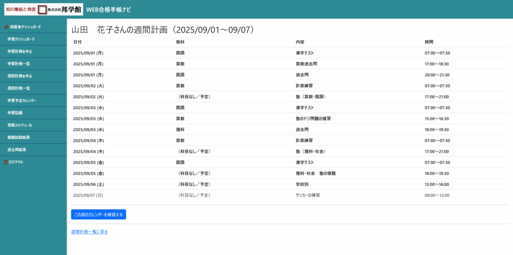 下の「この週のカレンダーを確認する」ボタンを押していただくと、学習予定カレンダーの該当週に飛び、予定をご覧いただけます。